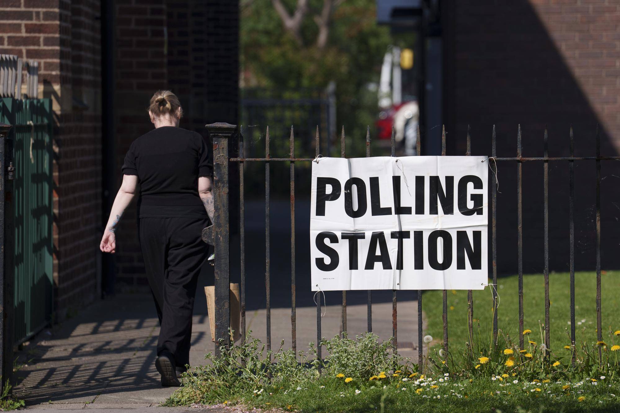 5月1日,在英国普雷斯顿,一名女子走向一家投票站。新华社发(乔恩·休珀摄)“左右”徘徊
